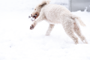 In der letzten Nacht hat es nochmal heftig geschneit – am Morgen lagen gut 10 Zentimeter nasser Neuschnee. Also sind wir erst einmal raus auf eine kleine Runde durch den Ort und da sie danach einen schönen Schneemantel trug in die Wanne zum enteisen 🙂
