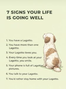 Morgen ist es soweit: unsere Lotta wird 2 Jahre alt – Zeit für einen kleinen Rückblick. Die pubertäre Phase der letzten Wochen scheint wieder überwunden – gerade haben wir einen ziemlich traumhaften Lagotto im Haus 🙂 Das Geburtstagsgeschenk ist auch schon gekauft und schläft seit dem Wochenende bei mir im Bett damit es auch gut riecht. Bin gespannt wie sie ihr neues Spielzeug findet. Sonst ist alles meist gut – sie folgt (außer bei uns im Garten), lässt sich abrufen, ist sozialverträglich mit fast allen anderen Hunden die wir so treffen und kennen … meist ein Traum. In letzter Zeit haben wir auch wieder mehr trainiert und geübt – klappt auch ganz gut aber wir haben auch einen Beamtenhund: das Mädchen ist dermassen strukturiert – alles muss nach Schema laufen aber das ist wohl sehr lagotto-typisch. Abends ab 17 Uhr 30 wird erst dezent, dann vehement aufs anstehende Futter hingewiesen, dann muss Herrchen essen, dann gibts Joghurt, dann muss gespielt werden (meist auf dem Fussboden vorm Fernseher) und dann müssen wir nochmal raus – Hundeweg abschnuffeln und ggf. ein Häufchen hinterlassen. Danach ist dann in der Regel Feierabend – sie geht in ihr Eckchen auf der Couch, rollt sich zusammen und pennt. Wenn wir dann gehen kommt sie mit, liegt auf meinen Füssen beim Musikhören oder in ihrem Körbchen im Arbeitszimmer. Oft bleibt sie aber auch dort bis gegen 4 Uhr in der früh – dann muss einmal das Haus untersucht werden bis sie dann im 2. OG bei Anne endet und da in ihrem Körbchen weiter schläft bis Anne wach wird. Um 6 gibts Garten (Pipi/Kaka), Futter, Maul abputzen und zu Anne ins Bett – kuscheln bis ich aufstehe. Sobald ich die Hose anziehe gehts ins Erdgeschoss weil “wir gehen ja jetzt gleich raus”.