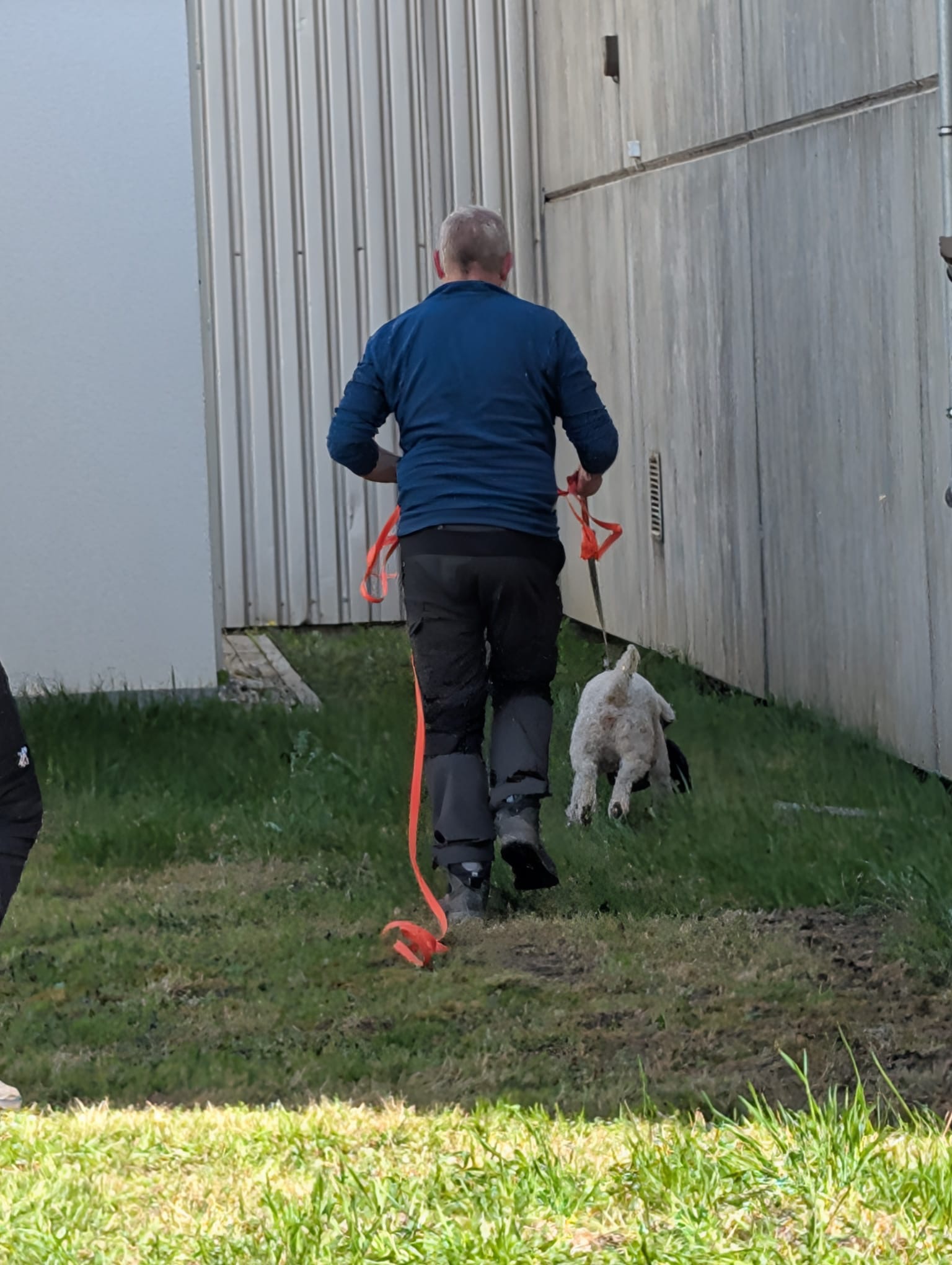 Gestern – Sonntag – gings nach der laaangen Morgenrunde (Wald und Felder an der Schleppleine) und der danach obligatorischen Dusche (Vorwäsche im Bach aber es hat genieselt und wenn sie über die Felder wuselt ist sie halt richtig dreckig) kam dann der Lagotto-Friseur. Also Frauchen und Herrchen schnappen sich die Kröte und legen Hand an – immer wieder ein Kampf aber irgendwann gibt sie doch auf und lässt das meiste geschehen ohne wirklich rumzuzicken. Aber es stresst sie schon ziemlich … zum Glück ist sie nicht nachtragend. Jetzt hat sie erstmal wieder Luft und selbst das lange Fell am Bauch haben wir stutzen können. Trotzdem sehen andere Lagotti die wir kennen anders aus – kräftigeres Fell, nicht so fein und fusselig … Dafür geben bei uns die Zecken eher auf weil sie nicht wirklich durchs Unterfell an die Haut kommen – entweder sehen wir sie auf ihr rumturnen auf der Suche nach einer Andock-Stelle oder sie hat sie im Gesicht (zum Glück schon länger keine mehr).